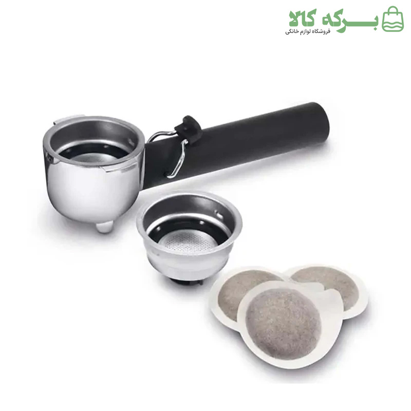دسته پرتافیلتر دارای فیلترهای مختلف است تا امکان استفاده از پودر قهوه یا پدهای آماده وجود داشته باشد. این طراحی انعطافپذیری بالایی به کاربر میدهد.