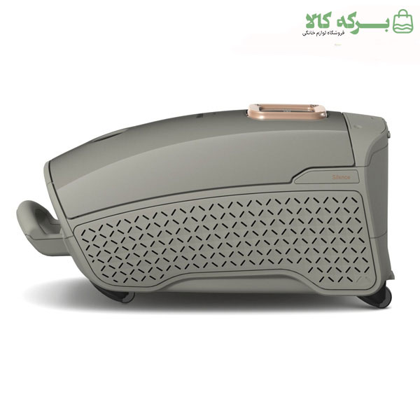 بدنه‌ی این جاروبرقی با رنگ خاکستری نقره‌ای خاص و متریال مقاوم، جلوه‌ای لوکس به محیط میده. طراحی آرگونومیک دسته و چرخ‌های نرم باعث میشه حرکتش روی فرش، سرامیک و پارکت خیلی روان باشه.