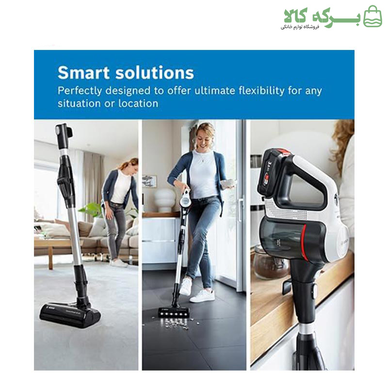 جاروشارژی بوش مدل BCS712GB به صورت ایستاده برای کف سالن و دستی برای مبلمان و نقاط محدود قابل استفاده است. این قابلیت انعطاف‌پذیری باعث می‌شود که بتوان با یک دستگاه، تمام نیازهای نظافتی خانه را پوشش داد.