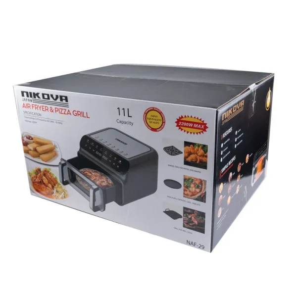 سرخکن نیکووا مدل29، یک انتخاب عالی برای خانواده های پرجمعیت است که به دنبال راحتی و کارایی در آشپزخانه هستند. این دستگاه با توان مصرفی 2200 وات و ولتاژ 240-220 ولت، قادر است به طور موثر و کارآمد مواد غذایی شما را آماده کند. با ظرفیت 11 لیتر، این سرخکن قادر است مقدار زیادی غذا را در هر بار پخت و پز کند. همچنین، بازه دمایی پخت مواد غذایی از 50 تا 230 درجه سانتی گراد امکان طبخ انواع مختلف غذا را فراهم می کند. این دستگاه همراه با سینی مخصوص پخت و پز و سرخ کردن، ظرف مخصوص پخت پیتزا و ظرف مخصوص گریل کردن و باربیکیو عرضه می شود.