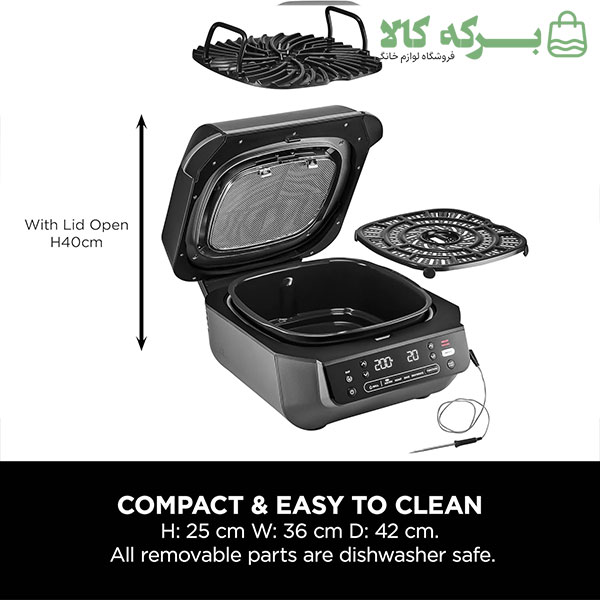 • ترموستات هوشمند: امکان تنظیم دمای دقیق برای پخت انواع گوشت و سبزیجات.